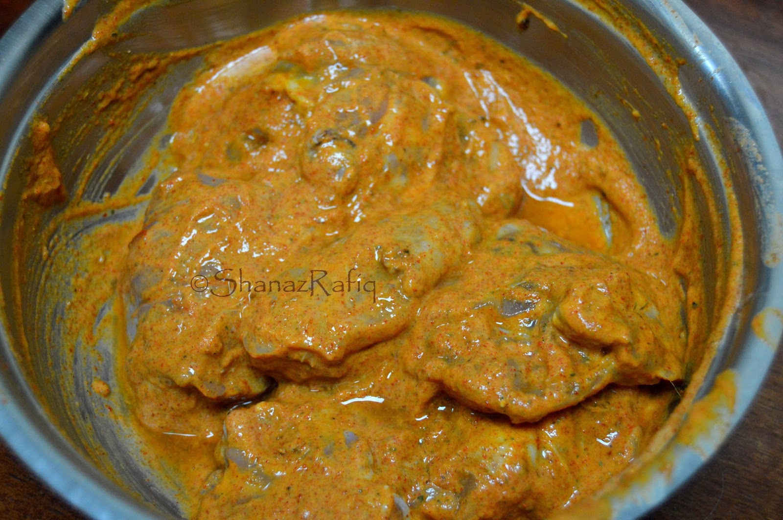 1) Clean the chicken and mix all the ingredients in a large bowl. Marinate chicken pieces in it for about 30 minutes (1 or 2 hours is also fine).